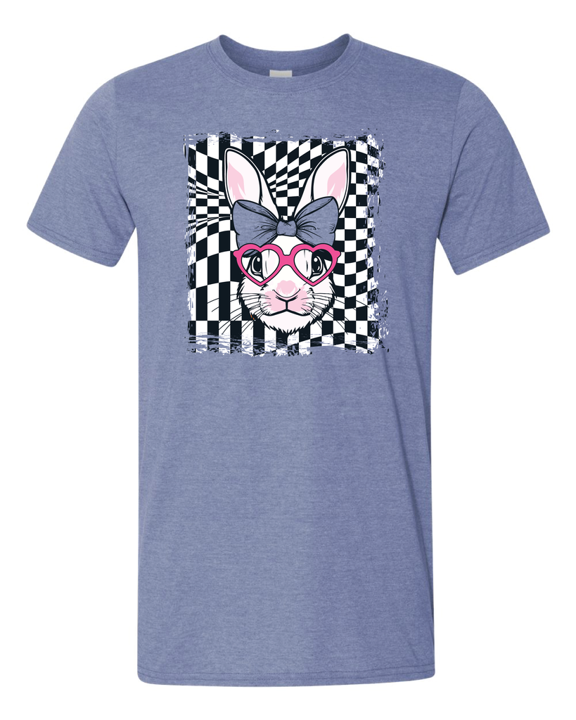 Hop back in time with our Retro Days Rabbit Tee! This Gildan tee features a bespectacled bunny with a bow, printed on the front for a fun, vintage vibe. Made with soft style fabric for maximum comfort. It's perfect for adding a touch of quirkiness to your wardrobe. (No carrots included!)